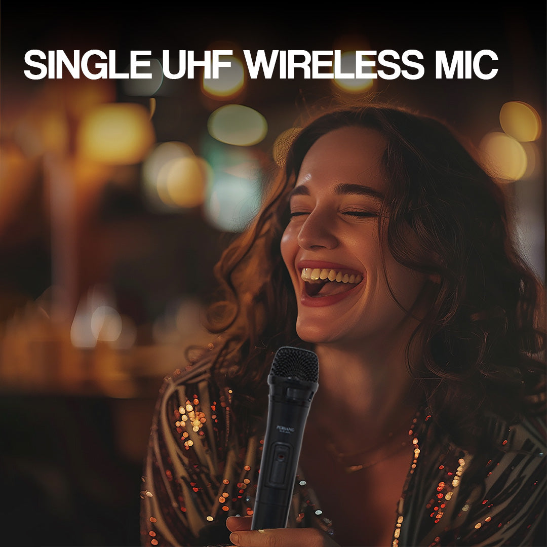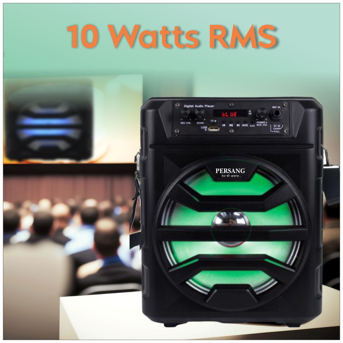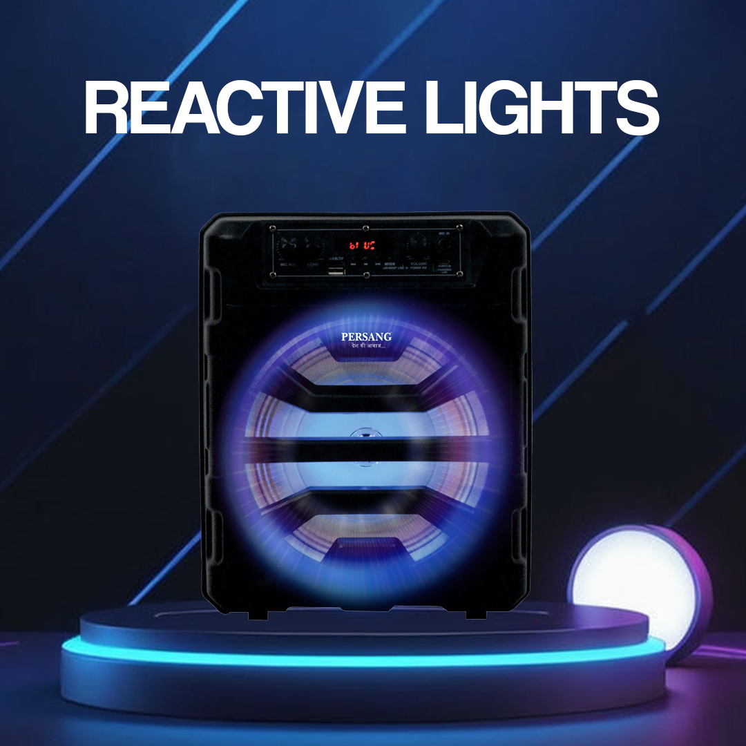 Power: 5 Watts Rms • 20.32 CM (8) Full Range Speaker • Li Battery 1800mAh • Led On-Off • USB-TF Input • FM Radio • Bluetooth • AUX-IN (3.5mm) • MIC input, Mic Vol, Echo • 1-VHF Wireless Microphone • Remote Control